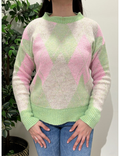 Camisola de malha fofa c/ losangos